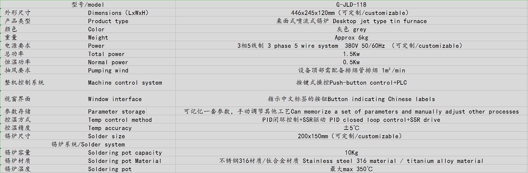● 可定制錫爐尺寸,滿足各種產品的工藝要求
