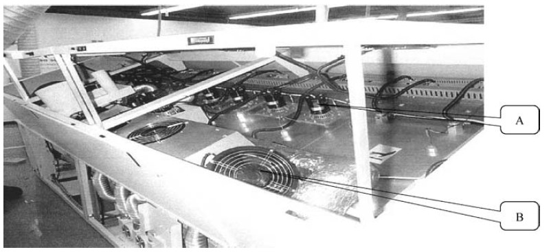 B :為回流焊FLUX 過濾制冷風(fēng)扇,它將集中的FLUX 進行冷卻,有利于FLUX 的回收與處理。