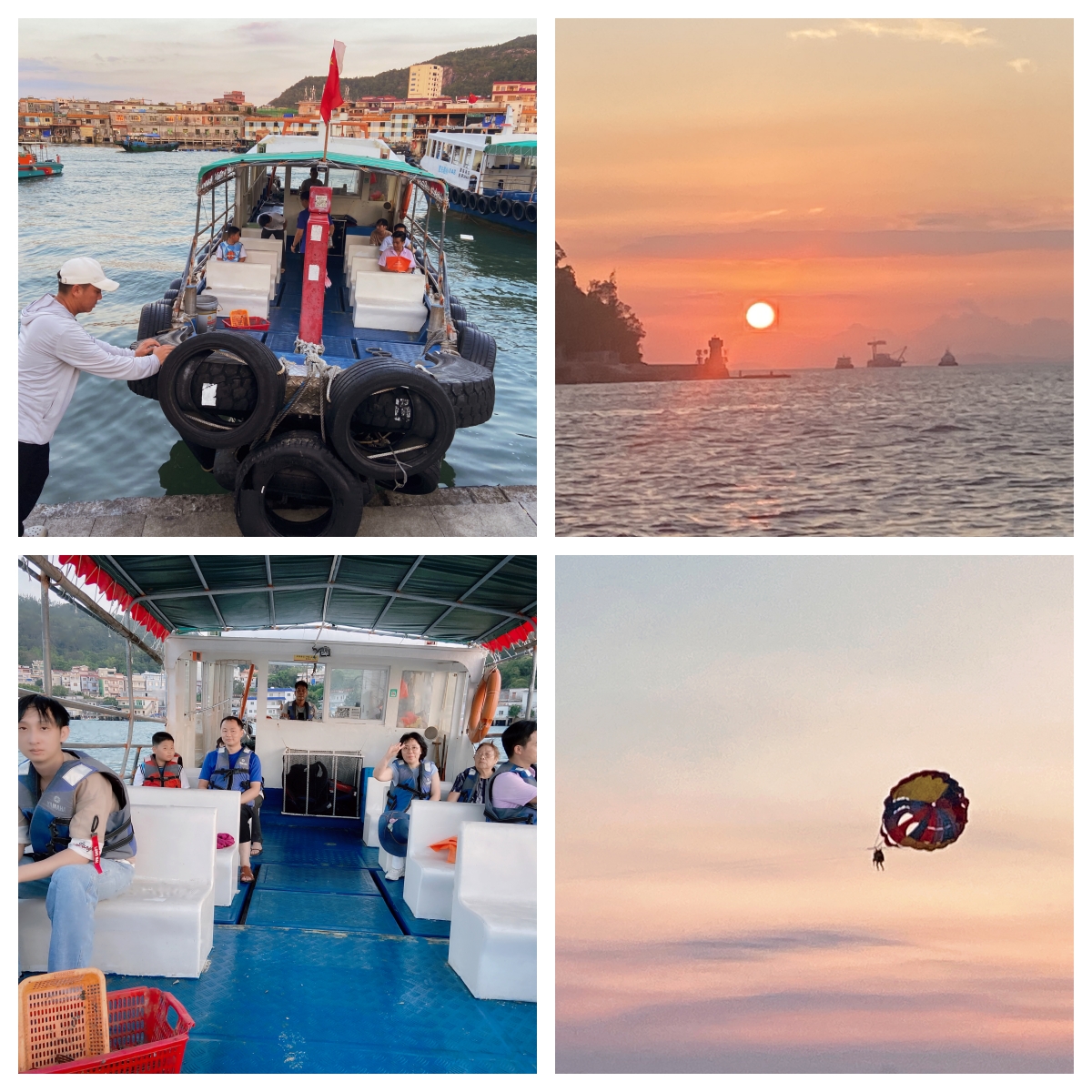 在雙月灣度假區的專業船只帶領下,我們乘坐著大船,迎著海風,踏上了一段激動人心的出海之旅。沿途,我們欣賞到了絕美的海景,感受著大海的浩瀚與壯觀。隨著夜幕的降臨,我們來到了一個絕佳的觀賞點。夕陽西下,天空被染上了一片金黃。這如詩如畫的景色讓我們陶醉其中,紛紛用相機記錄下這美好的一刻。